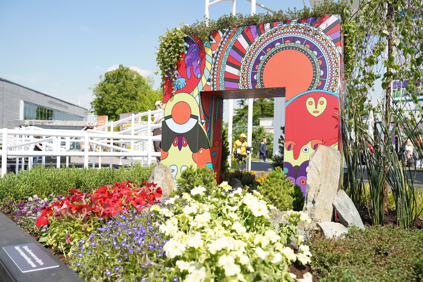 Символом единения и сотрудничества, устойчивого развития края стала узнаваемая буква «П». Специально для клумбы на нее нанесли яркий Пермский звериный стиль, осовремененный пермским художником и дизайнером Игорем Горячевым специально для выставки «Россия».