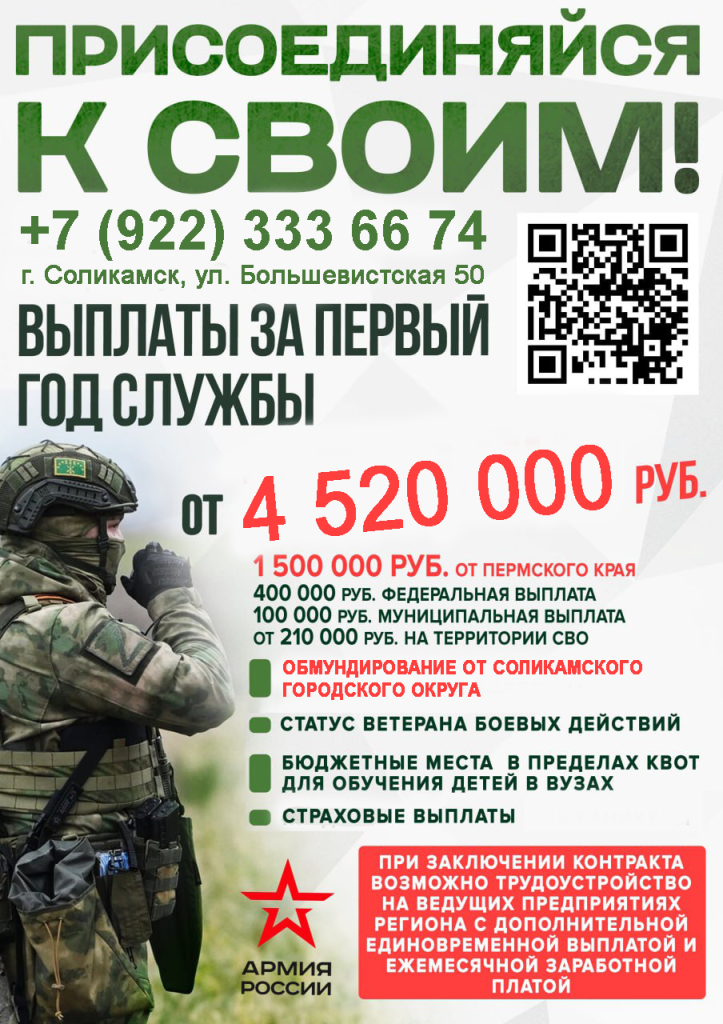 При заключении контракта в Соликамском городском округе общая единовременная выплата составляет 2 млн рублей.